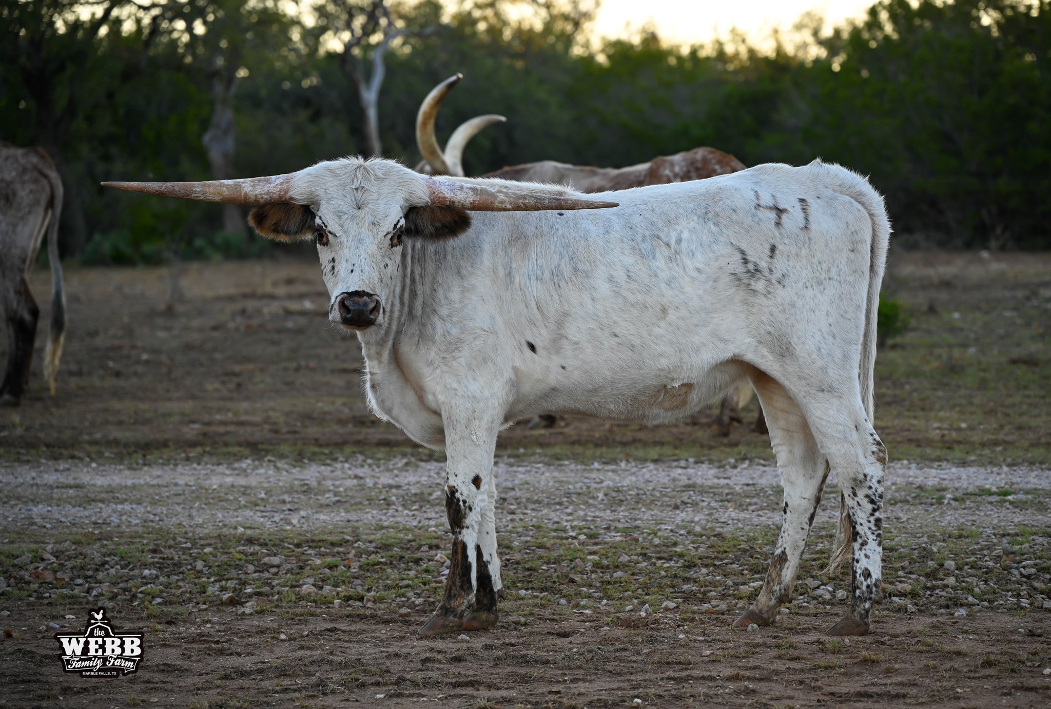 Horns going straight out, no upward curve at all! Solid body, excellent conformation, gentle disposition, she's just getting started. Buyer responsible for hauling.